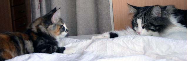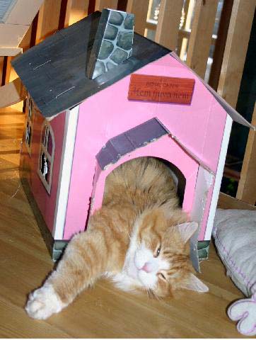 Till sist en bild på vår lejonkung på sitt favoritsovställe. Att han börjar bli för stor för det lilla huset han fick som kattunge verkar inte beröra honom nämnvärt. |