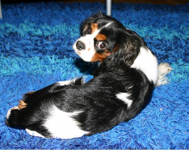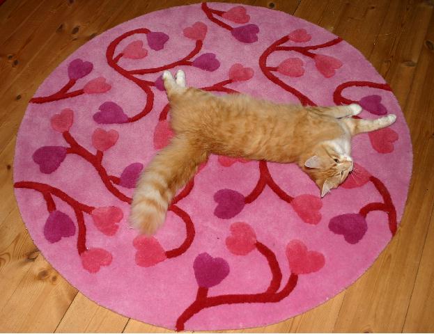 Familjens djur blev väldigt förtjusta i Matildas nya matta - här är det Milla som njuter