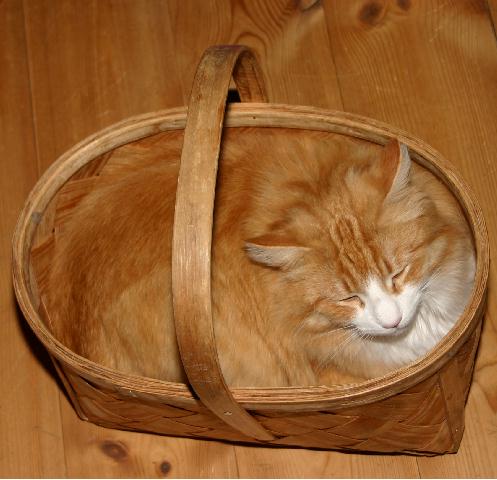 Nisse tar varje tillfälle att krypa ner i korgar och lådor
