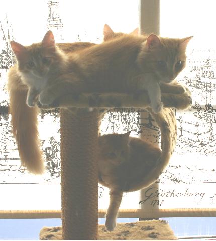 Inte alltid lätt å va mamma katt när alla bebisarna ska ligga så nära som möjligt |